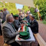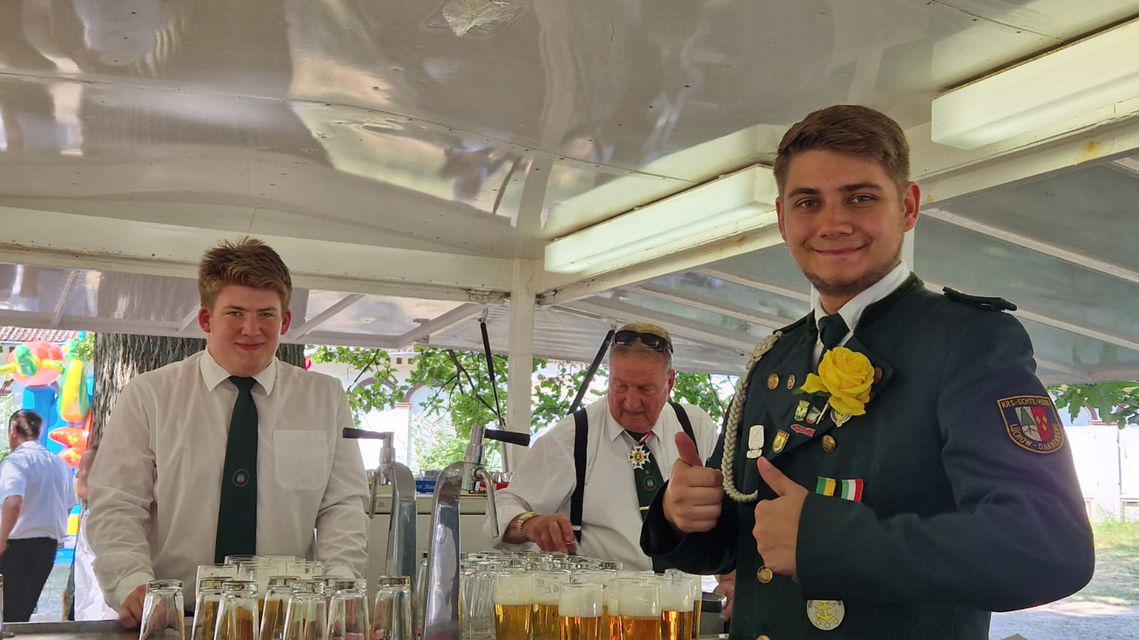Die Königsscheibe 2024 ist bei der aktuellen Majestät angebracht. Es ziehren nun zwei Scheiben die Königsburg, da Henning bereits 2017 die Königswürde errungen hatte. Bei bestem Wetter, sehr guter Stimmung wurden reichlich kühle Getränke und heisse Würstchen verzehrt nachdem die Scheibe durch einen Jungschützen angebracht wurde und die Anbringung durch die Qualitätskontrolle eines erfahrenen Schützenbruders ging, der noch für einige kleine Verbesserungen sorgte.