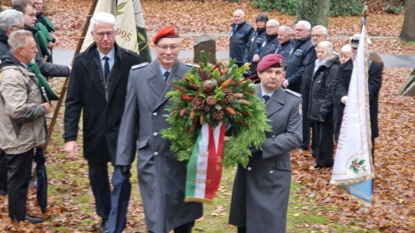 Die Ansprache hielt traditionell Bürgermeister Holger Mertins, der in seinen Worten an die Ursprünge des Volkstrauertages erinnerte: die Mahnung, Frieden, Demokratie und Menschenwürde zu wahren. Kriege, so betonte er, begännen stets mit Lügen und der Herabwürdigung des Anderen – mit dem Verlust des Miteinanders. Mit Blick auf die derzeitigen weltpolitischen Konflikte sei die Bedeutung des Gedenktages aktueller denn je.