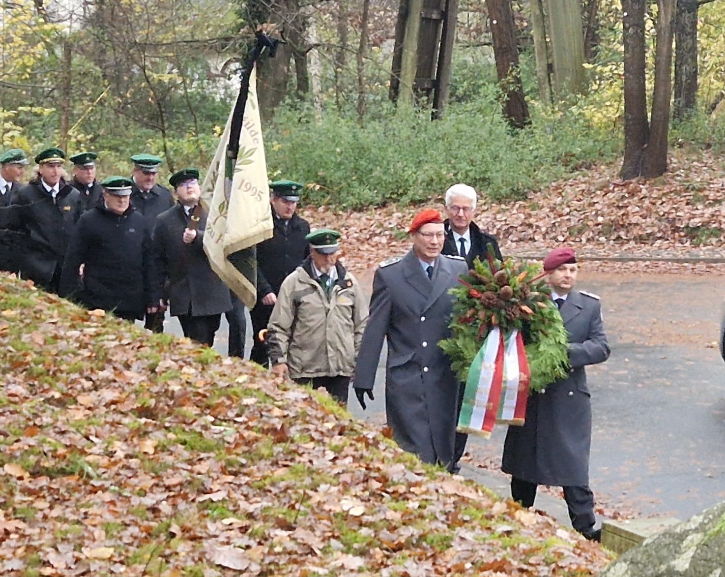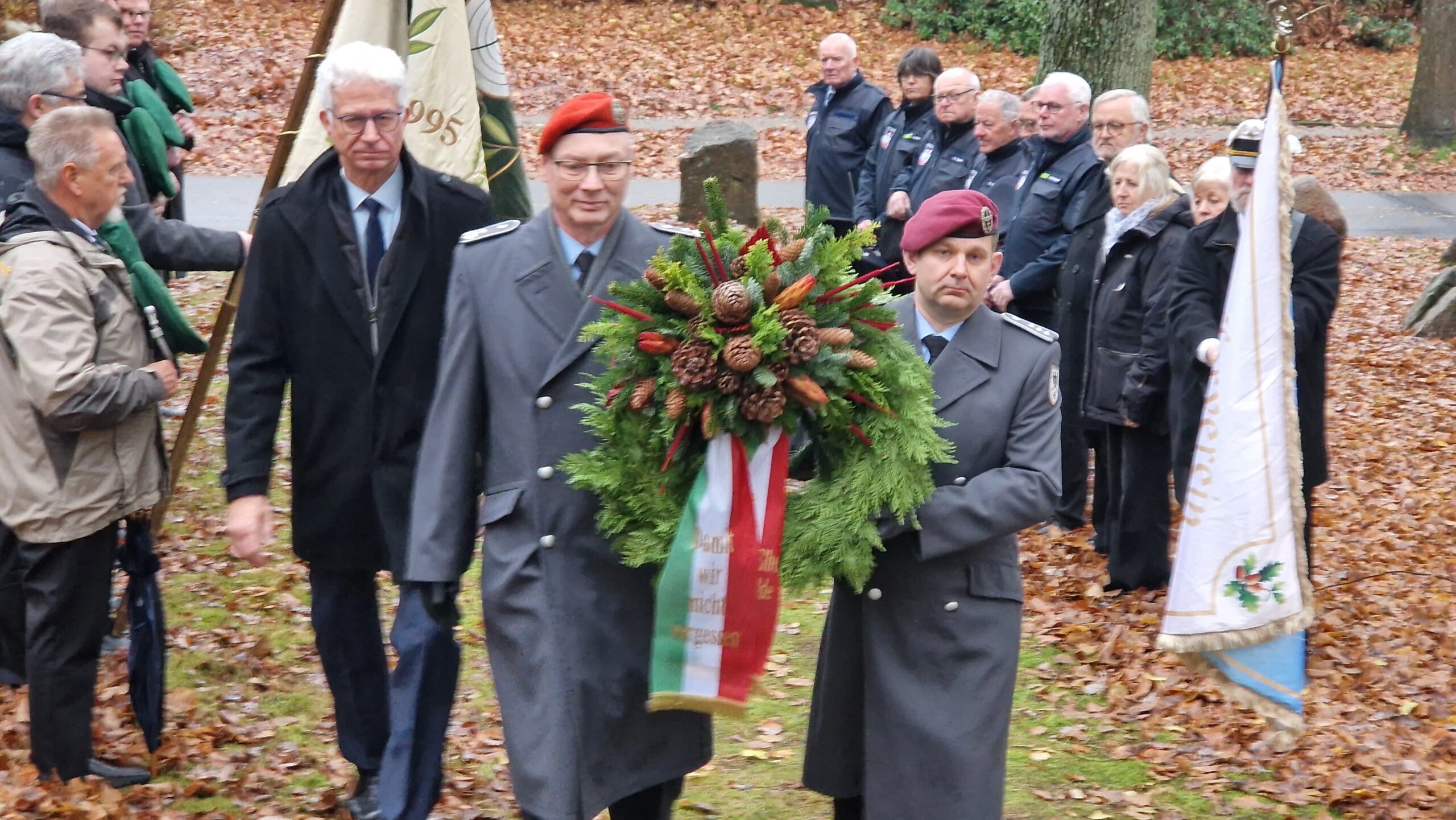 Als Vertreter der Bundeswehr übernahmen Oberstleutnant Fritz Boldt und Hauptmann Stefan Schulz die feierliche Kranzniederlegung. Beide Offiziere sind zugleich Mitglieder des Schwarzen Corps der Schützengilde.