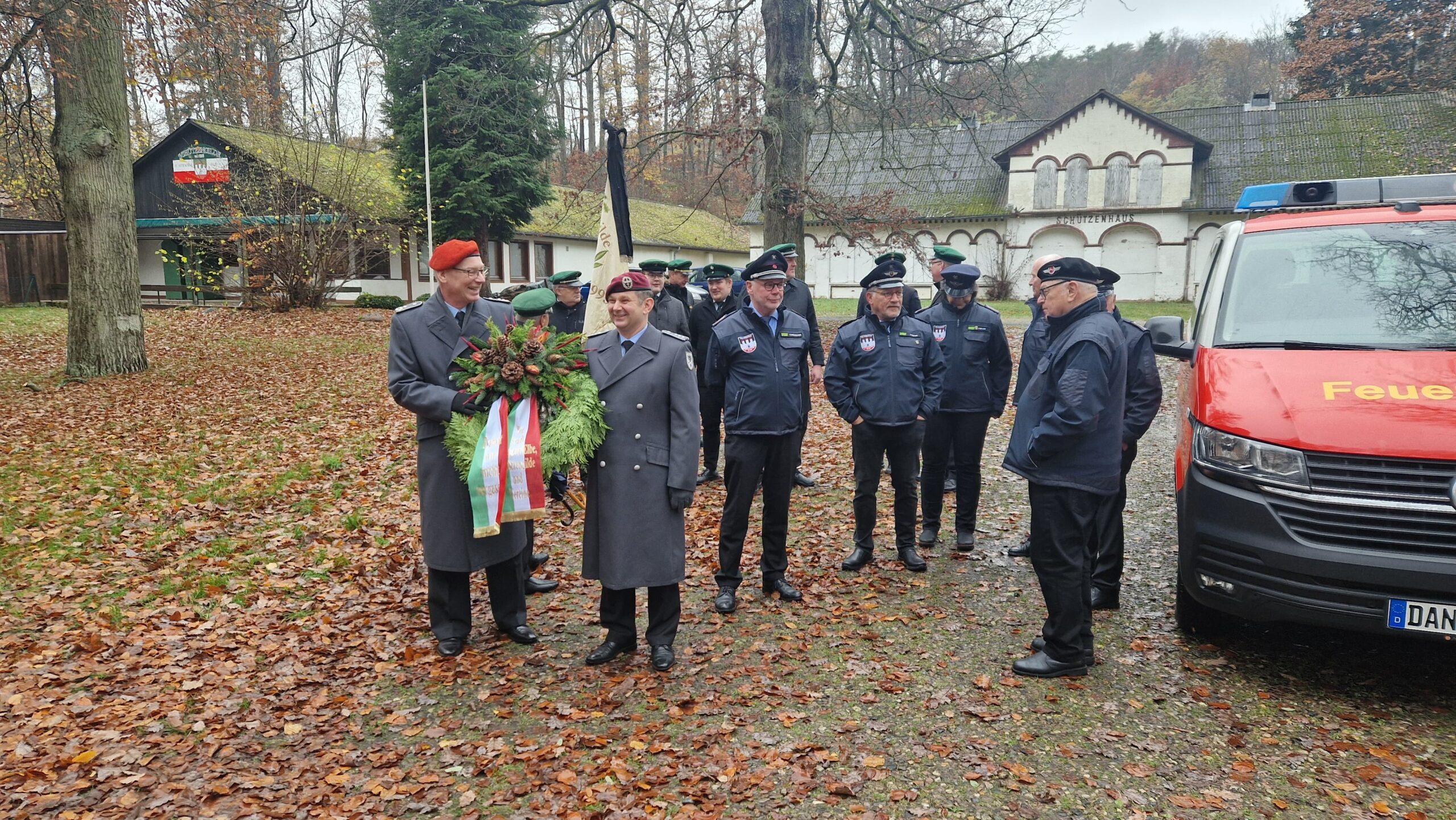 Hitzacker, 16. November 2025 – Am Ehrenmal in der Klötze fand am Sonntag die zentrale Gedenkfeier zum Volkstrauertag statt. Vertreter der Schützengilde von 1395 zu Hitzacker, des Schiffervereins Hitzacker und der Freiwilligen Feuerwehr Hitzacker erwiesen den Opfern von Krieg und Gewalt ihre Ehre.